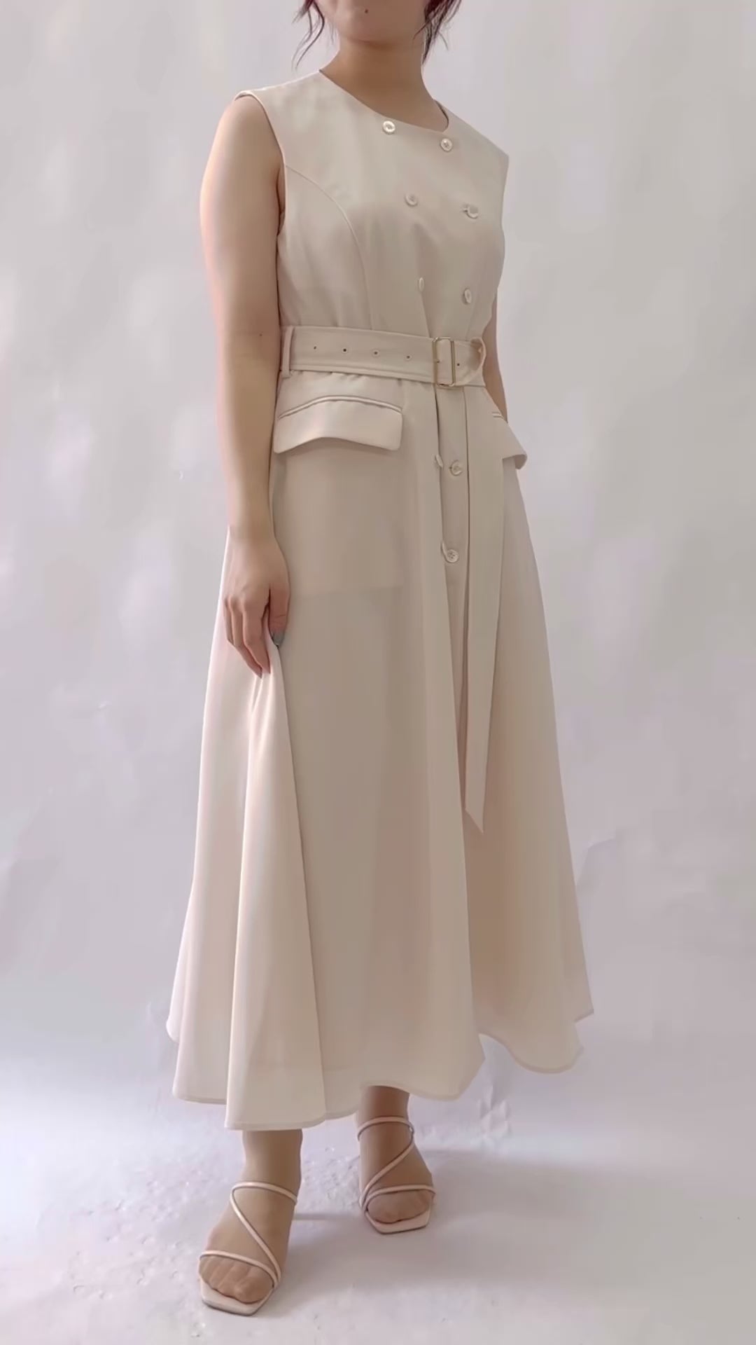 フロントに並ぶシェルボタンが美しいジレドレス。