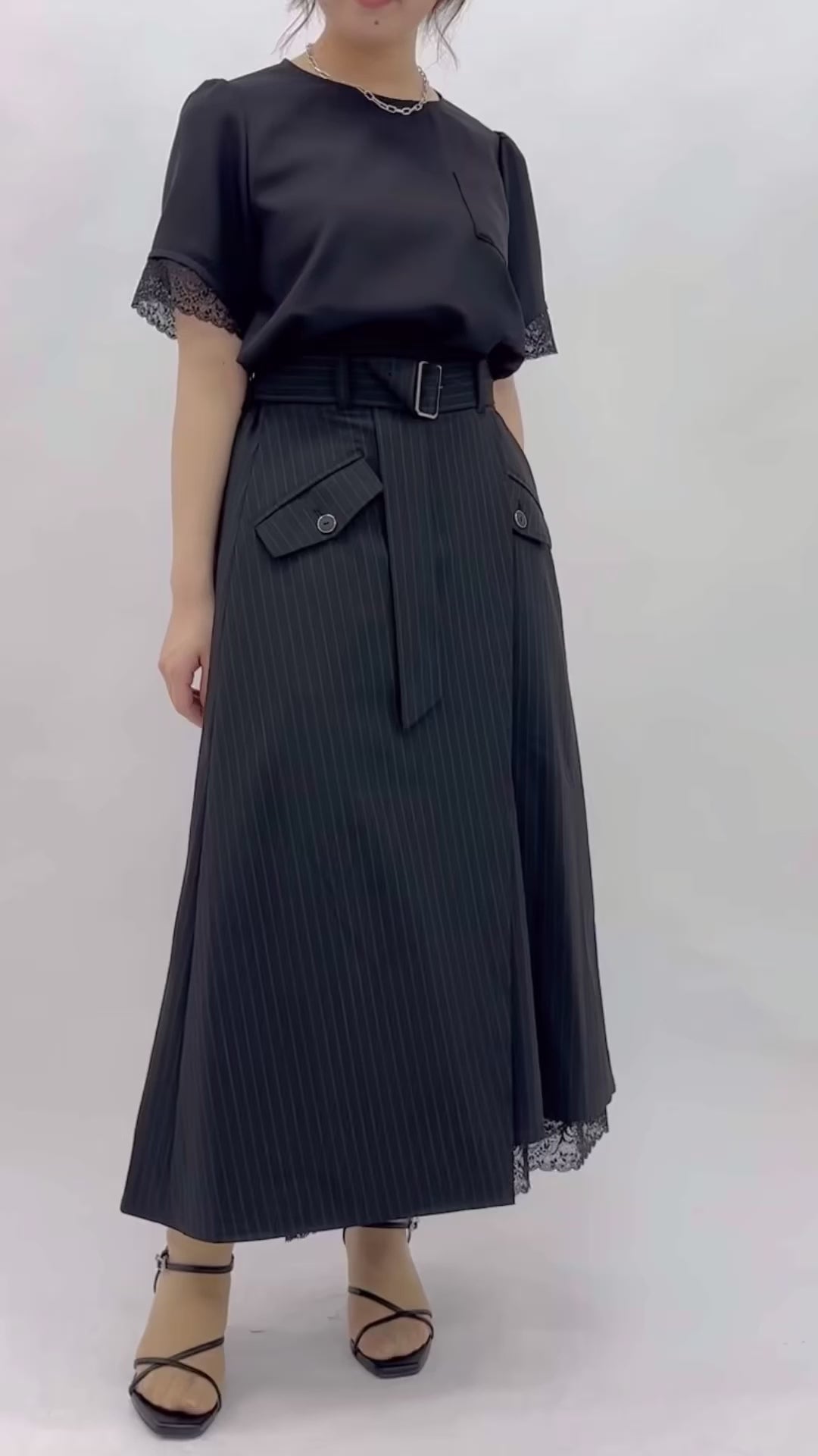 袖口からチラリと見える繊細な表情のレースが美しいアクセントに。
