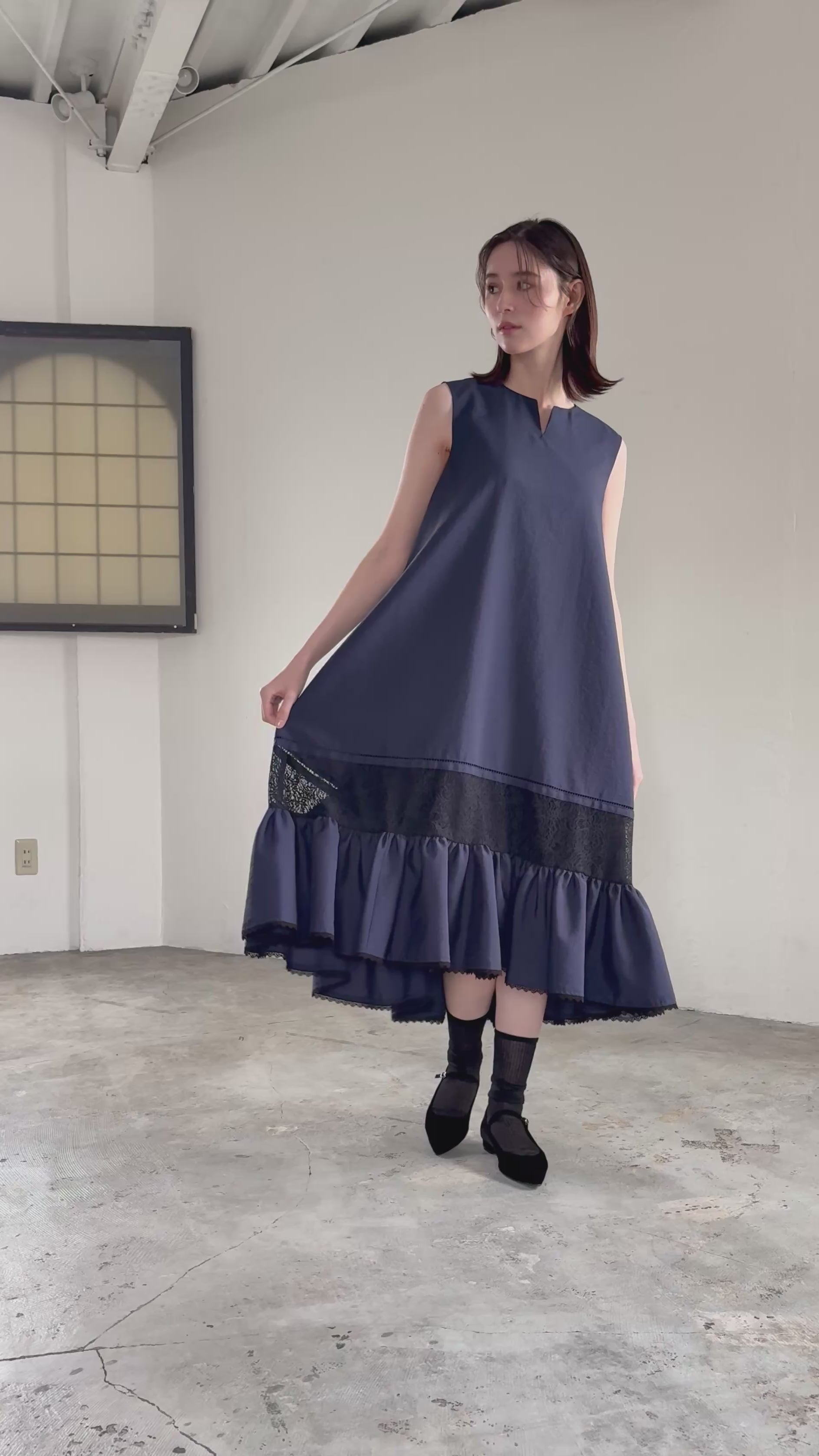 裾にあしらわれた異なる3種類のレースと、ふんわりと広がるフリルが目を引くデザイン。
