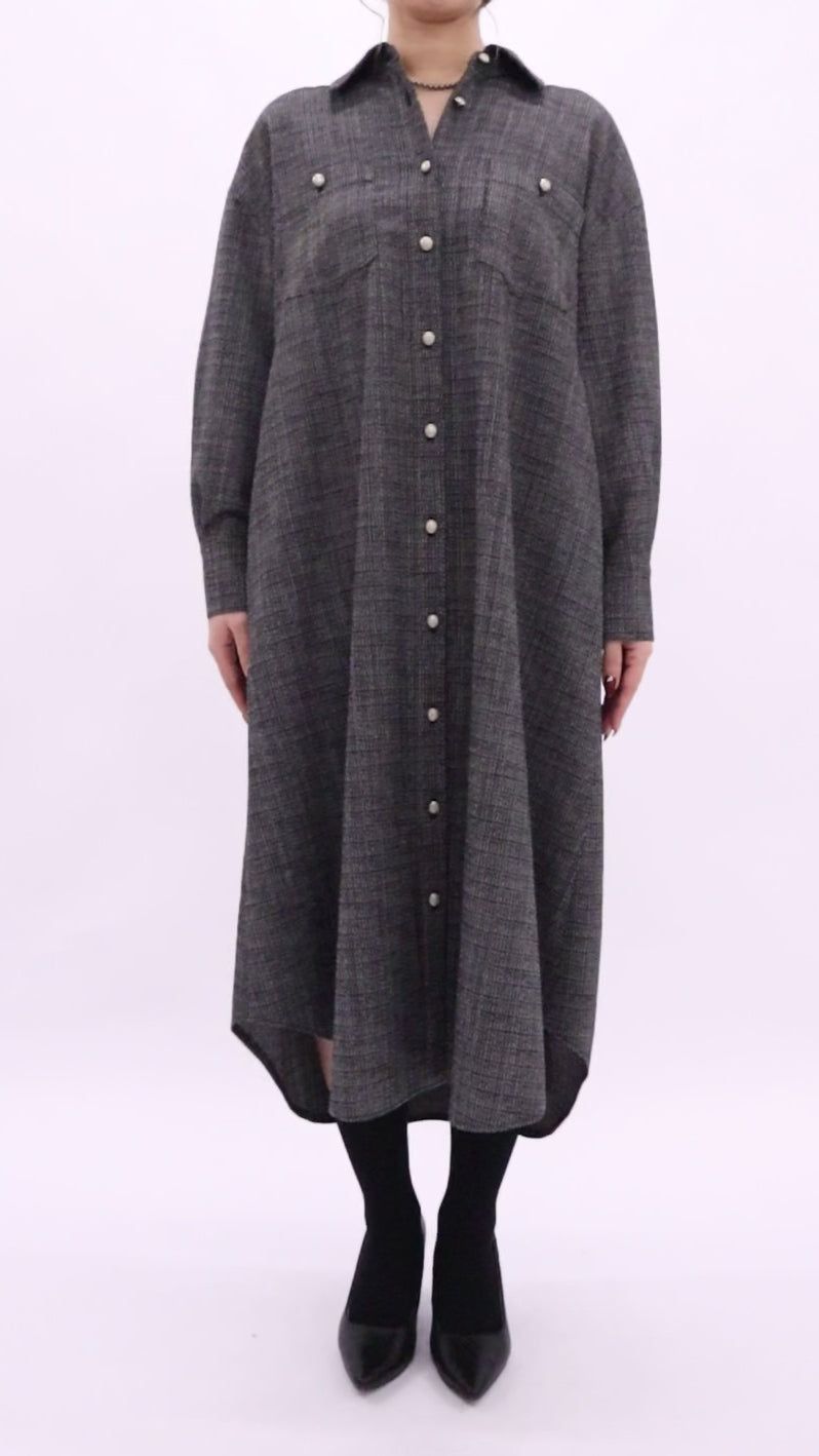 ドロップショルダーで抜け感のあるシャツドレスを、上質なツイード素材を用いて仕上げた一着です。
